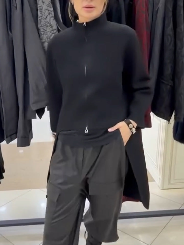 Women's Spring Casual Solid Color Satin Two-Piece Suit