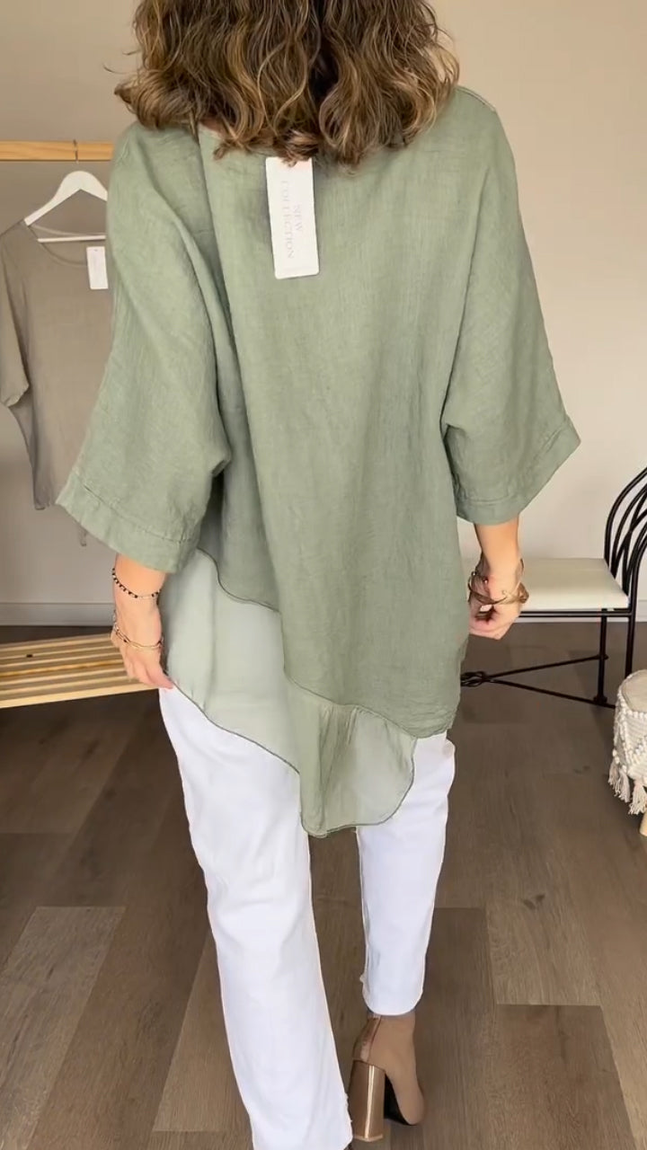 Womens Round Neck Irregular Casual Long Top