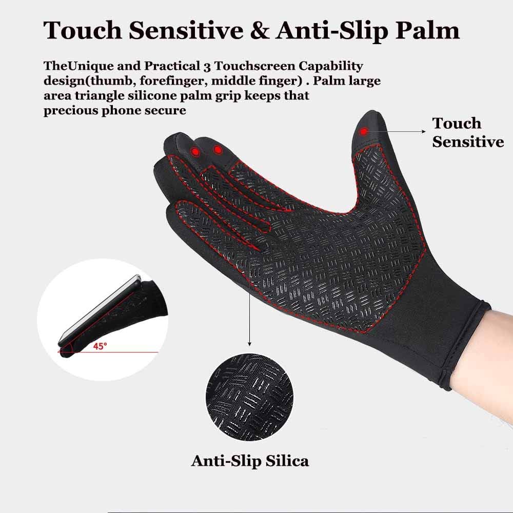 The gloves' thumb, index finger and middle finger contain conductive material, so you can use smart phones, tablets and other touch screen devices when wearing gloves.