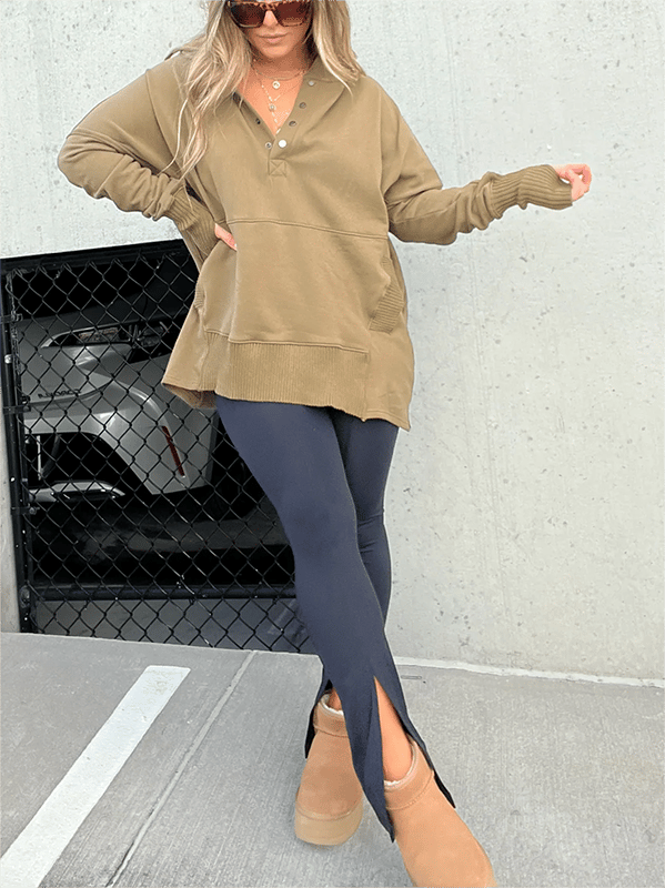 Crafted from soft, comfortable fabric and featuring oversized styling, a hood, front snaps, kangaroo pockets, thumb holes, and ribbed sleeve cuffs and hem, it keeps you warm and cozy without compromising on style.